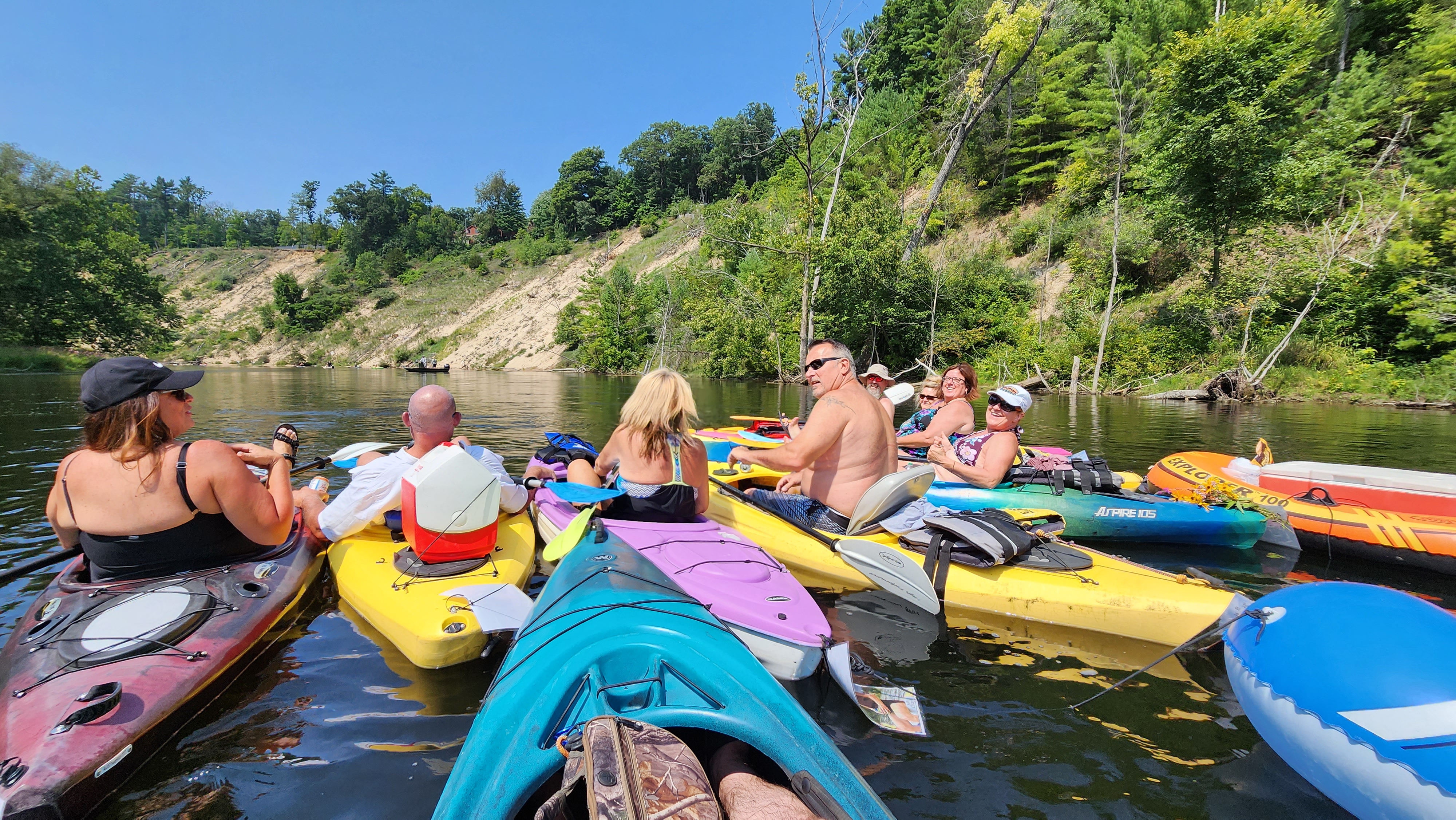This trip is very scenic! You must get a permit online at https://www.recreation.gov/permits/249987 You can do this trip in 3 hrs with very little stopping or close to 4 + hrs depending on your stops and active paddling. Kayaking this section does require some basic maneuvering skills. Unlike the wide Muskegon, this is a narrow river and has plenty of winding! Very little rapids and not a ton of rocks to avoid like others on this list. This speed is moderate so you have time to make your paddle adjustments. If you want something a little more challenging than the Muskegon this is a great option. Because it is a permitted River in the National Forest there is also less traffic.